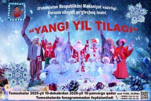 ✅Xorazm viloyati Qo‘g‘irchoq teatri jamoasi yaqinlashib kelayotgan Yangi yil bayrami munosabati bilan 2025-yil 10-dekabrdan 2026-yil 10-yanvar kuniga qadar, «Yangi yil tilagi» nomli spektakli bilan bolajonlar uchun yangi yil teatr tomoshasini namoyish etadi.