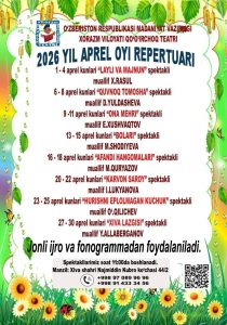 2026-yil 1-aprel kuni Xorazm viloyati qo‘g‘irchoq teatri tomosha zalinda Urganch shahridagi Nihol nodavlat ta’lim maskani o‘quvchilari uchun teatr repertuaridagi «Quvnoq tomosha» spektakli namoyish etildi.