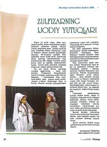 Teatr jurnalining 2026-yilgi birinchi sonida Xorazm viloyati qo‘g‘irchoq teatri oliy toifali aktyori Zulfizar Shonazarova to‘g‘risida «Zulfizarning ijodiy yutuqlari» nomli maqola e’lon qilindi.