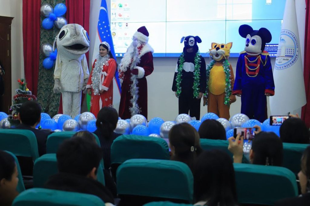 21-dekabr kuni Xorazm viloyati qo’g’irchoq teatrining bir guruh ijodkorlari Urganch Davlat Universitetida Yangi yil kayfiyatini uyg’otuvchi teatrlashtirilgan tomoshalarni taqdim etgan xolda, Qorbobo va Qorqiz obrazlarini gavdalantirib oliygohning pedogogik jamoasi hamda talabalariga yorqin taassurotlar ulashishdi.
