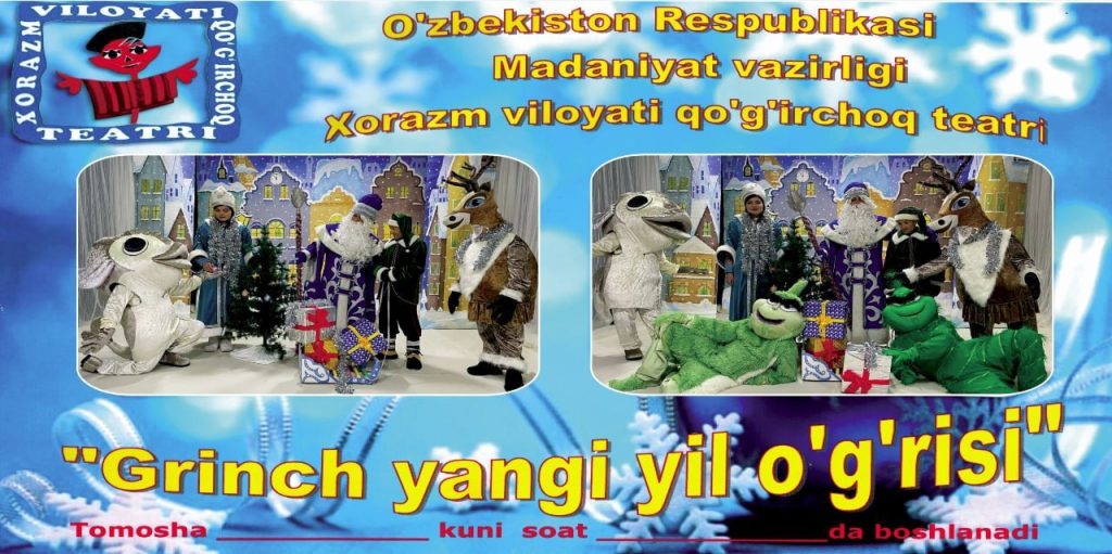 🎄⛄️Yangi yil munosabati bilan «Grinch yangi yil òğrisi» nomli sarguzashtlarga boy spektakl namoyishi òtkaziladi.