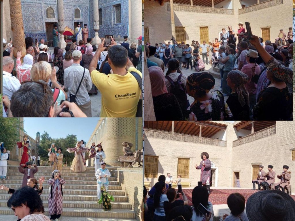 On September 24, 2022, the puppet theater team of the Khorezm region performed the National Puppet Games and the Ancient Arch in front of the Kalta Minor architectural monument in the Ichan Castle area for a group of guests who visited the city of Khiva. «58-Khan» theatrical performance was shown in the complex