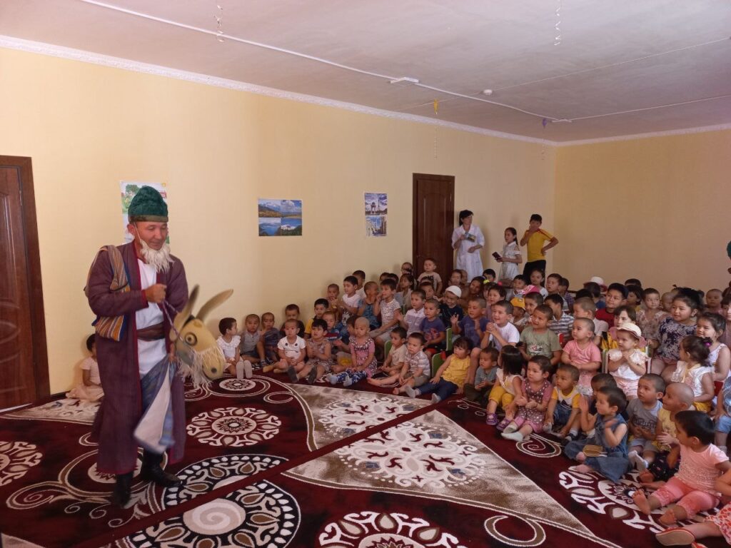 2022-yil 16-iyun kuni Xorazm viloyati qo’g’irchoq teatri bir gurux ijodkorlari Xiva shaxridagi Oilaviy nodavlat MTTda repertuardagi Y.Allaberganovning «Xiva lazgisi» spektaklini namoyish etishib, bolajonlarga yuqori kayfiyat baģishlashdi.